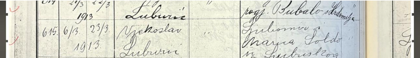 Vjekoslav “Maks” Luburić rođen je 6. ožujka 1913. u Ljubuškom, Hercegovina, a kršten je 23. ožujka iste godine, kako je zabilježeno u matičnim knjigama župe (original prikazan dolje).